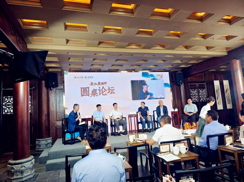 在圆桌论坛环节,邓华凤称赞五粮液酿酒专用粮工程技术研究中心形成的全产业链闭环式可溯源模式。徐岩指出,中国白酒以自然酿造为主,五粮液有超过三千种微生物,造就了其感官之美,且五粮液在传承基础上不断创新。邓宏兵从经济角度强调,酿酒业是长江经济带重要支柱产业,五粮液要做长江美酒带高质量发展的引领者。傅才武认为,要挖掘长江酒文化的魅力和价值,将中华民族的历史、性格和审美结合进来,让长江美酒河独一无二。