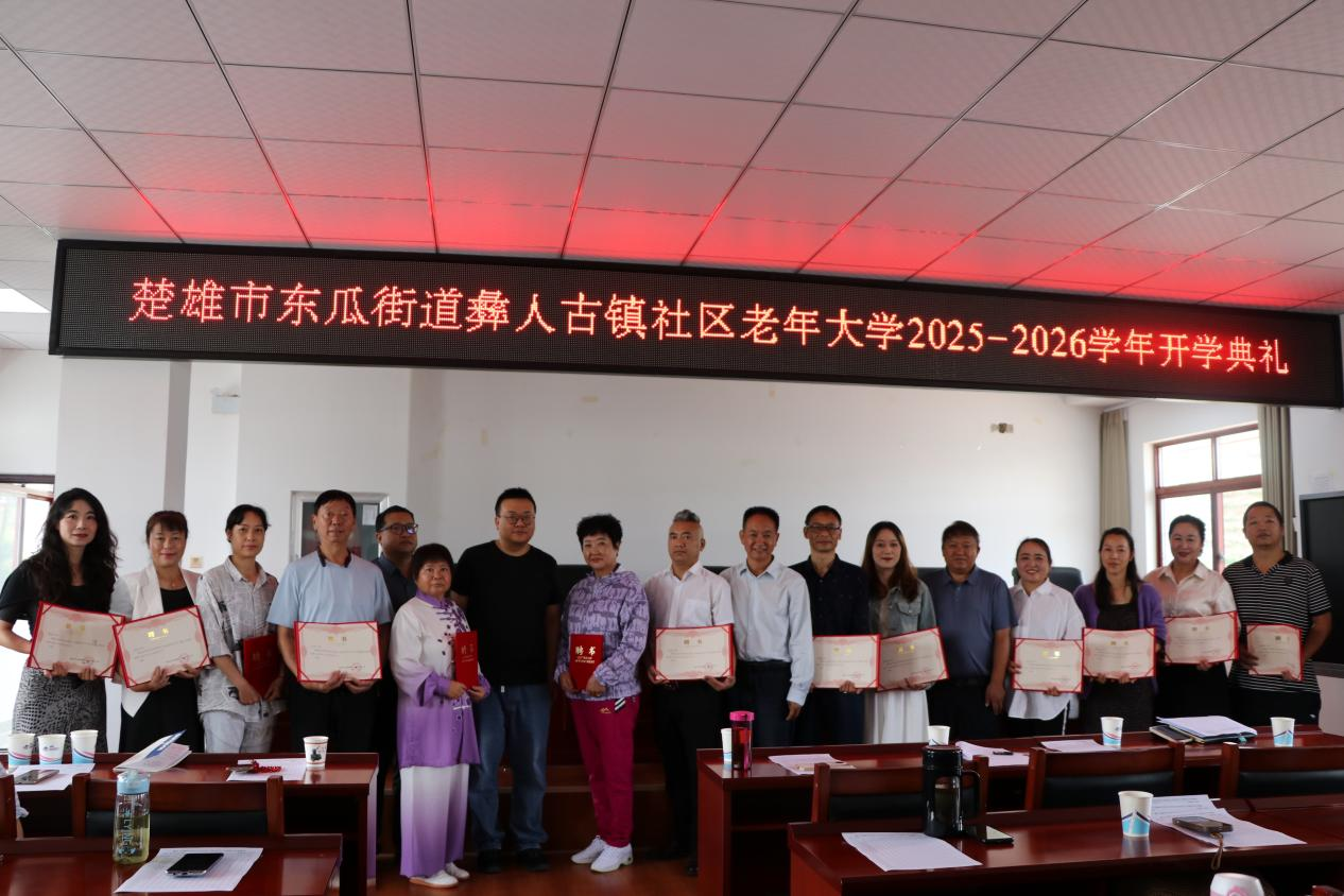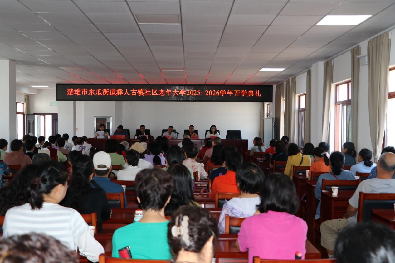 新时代民族网讯(云南日报云新闻记者 陈明海 通讯员 李慧 余昌国)金风送爽,硕果盈枝。9月8日上午,楚雄市东瓜街道彝人古镇社区老年大学2025—2026学年开学典礼在高新区零工市场四楼培训教室举行。楚雄市委老干部局及市老年大学相关负责人、东瓜街道及社区负责同志与全校382名各族师生代表齐聚一堂,在庄严的国歌声中,共同开启老年教育与民族团结互促共进的崭新篇章。