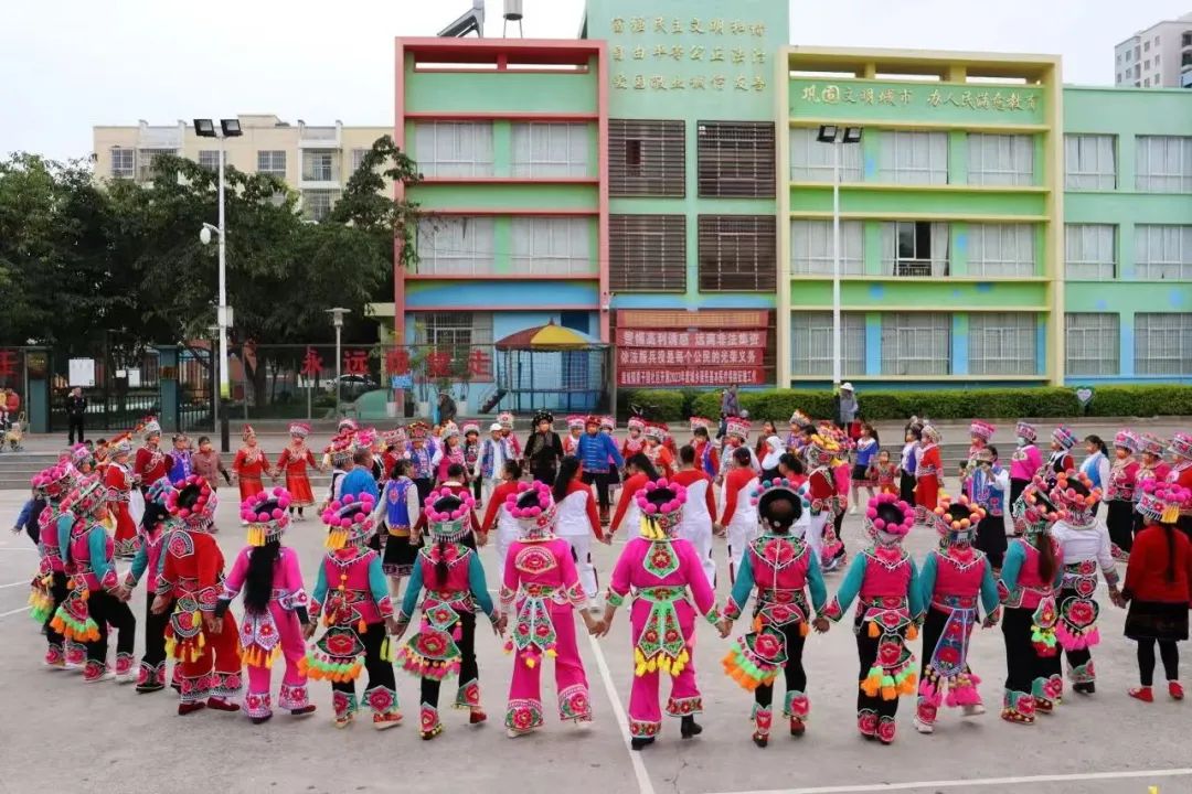 文化互嵌,中华优秀传统文化浸润人心 依托“石榴红”驿站,楚雄各地将文化传承与民族团结教育紧密结合,让中华文化成为凝聚人心的精神纽带。彝人古镇社区的驿站定期开展中华文化讲座、中华文明礼仪学习、经典读书会等活动,邀请各族群众共同参与,在共读经典、共学礼仪中增强文化认同。鹿城镇的部分社区也依托驿站开展类似活动。每逢春节、中秋、火把节等传统节日,驿站还组织民俗表演、团圆宴、非遗体验等活动,各族群众载歌载舞、共庆佳节,在文化互鉴中拉近心灵距离,筑牢“五个认同”的思想根基。
