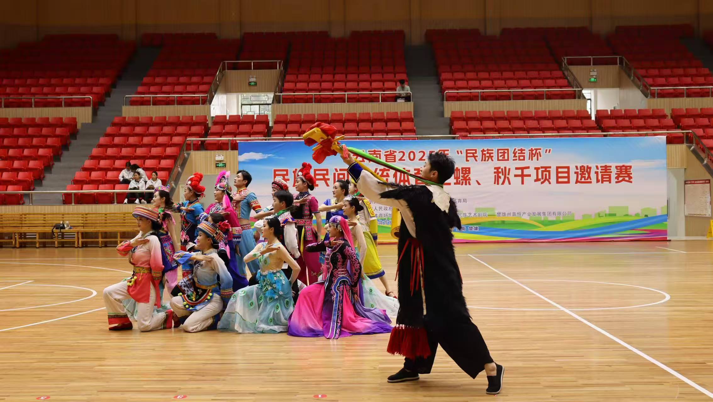 以文化为内核,厚植中华民族共有精神根基 开幕式上,《锦绣中华》舞蹈勾勒各民族交融共生图景,彝族民歌《阿噻调》传递浓郁地方风情,彝族服饰展演《云绣彝裳》展现民族文化底蕴,这些节目不仅是民族文化的展示,更是对中华文化多样性与统一性的生动诠释。陀螺、秋千作为民族民间传统体育项目,是中华文化宝库的重要组成部分,赛事将其作为核心竞赛内容,既推动了民族文化的活态传承,更让各族群众在参与中感知“中华文化是各民族文化的集大成者”。曲靖代表队运动员罗蓉希望“让更多人爱上秋千这项传统运动”,正是各族群众主动成为中华文化传承者的缩影,为构筑中华民族共有精神家园注入文化力量。