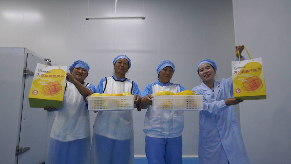走进位于永仁县中和镇的奔腾食品加工坊,一股清甜的果香扑面而来。工人们正在流水线前井然有序地对新鲜芒果进行清洗、去皮、切片、摆盘、烘烤,金黄的芒果蜕变为色泽诱人的芒果干,成为开袋即食的美味零食。工人李会梅说:“村里建了加工厂对于我们来说是非常好的,自家的芒果可以直接拉来这里卖,平时农活不忙的时候还可以来打零工,一天100多元钱。”