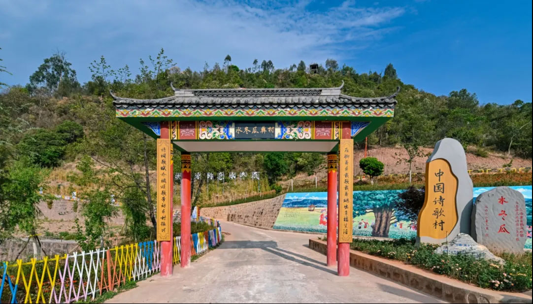 水冬瓜村是彝族传统村落,彝族文化氛围浓厚,彝族风俗保存完整,左脚舞、左脚调、龙头四面八方琴、彝族刺绣等特色民族文化历史悠久,被命名为省级少数民族特色村寨。近年来,牟定县文联、摄影家协会、作家协会深入水冬瓜村挖掘文化资源,依托优美的自然环境、淳朴的民风民俗和独具特色的彝族左脚舞文化,常态化开展创作采风活动。通过整合资金,建设了诗歌长廊、左脚舞广场,沿进村道路制作诗文造型牌12块、诗文石刻9个,绘制村内墙体画和小景观点10余处,打造了牟定县首个中国诗歌村,使其成为该县传承和保护中华优秀传统文化,推进精神文明建设的靓丽名片。 蟠猫母鲁彝韵
