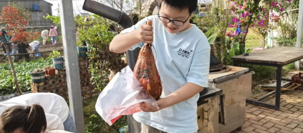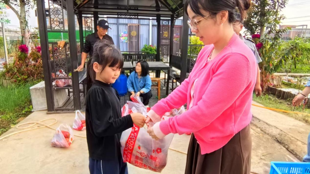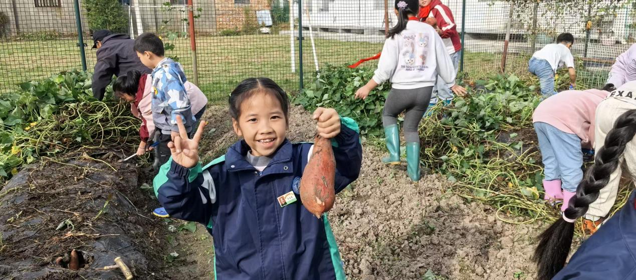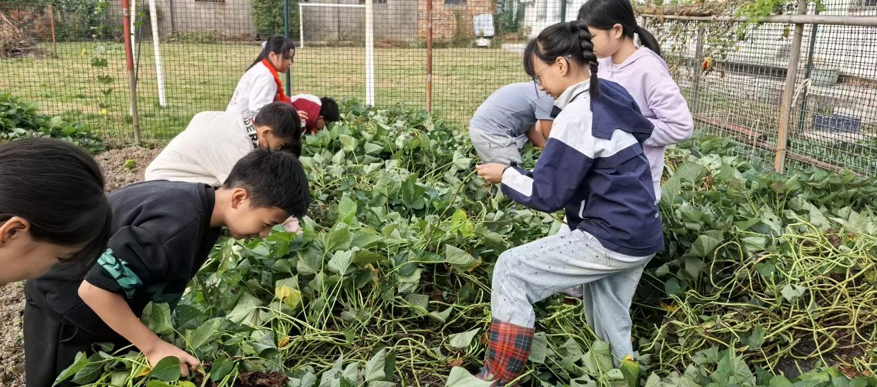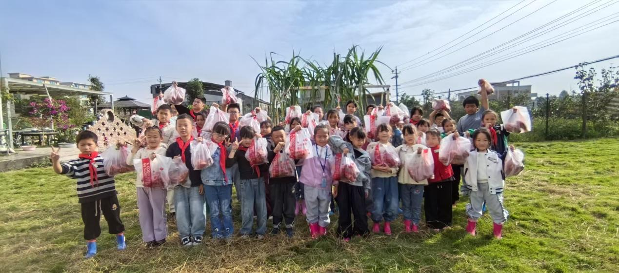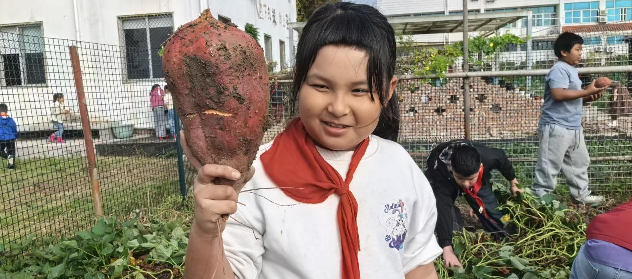 巧合的是,校园挖红薯活动同步开展。教务处联合少先队大队部开展各族孩子们挥舞着小泥手,小心翼翼刨开泥土,一个个圆滚滚的红薯应声而出。他们认真洗净红薯上的泥渍,捧着这份带着泥土温度的“礼物”,郑重送到老师和教职工手中:“‘薯’你最棒!”“‘薯’你最甜!”简单的话语,道尽了对师长日夜守护、点滴温柔的感恩。教务主任王益萍老师接过红薯后感慨:“应老师的甘蔗和孩子们的红薯,是秋日里最珍贵的礼物,既传递了感恩之心,更凝聚了各族师生的深情。”