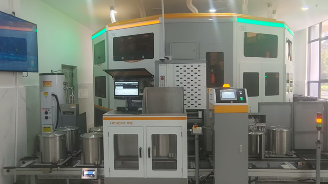 一、以“智”提质,打造中医药服务新标杆。一是系统智能联动,实现处方一键流转。中心依托环柱型机器人全自动流水线,与医院HIS系统无缝对接,实现处方数据实时同步、自动分配。药师审核后扫码绑定煎煮锅,全程杜绝人工录入误差,从接方到煎煮启动仅需5分钟。二是机器人全流程作业,提升服务能级。机器人精准完成称重、浸泡、武火文火智能转换、倒渣、清洗全流程操作,储液罐采用80℃热水自动清洁,杜绝交叉污染,日均处理处方量达传统模式的3倍以上。三是标准化流程管控,确保操作规范。建立从接方、煎煮到配送的全流程标准化操作规范,实现各环节精准衔接、规范运作,为全市医疗机构智慧化建设提供可复制、可推广的示范样板。