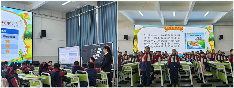 三维课堂齐发力 学科育人活起来 本次公开课聚焦日常教学核心,覆盖语文、英语、数学、体育等多个学科的优质课堂,串联起趣味与实效兼具的育人场景,尽显全校课堂教学的扎实与灵动。语文课上,教师以情感为线串联文本,课前故事分享点燃氛围,让学生在品读文字中感悟美好情感,听课教师点评“既夯实知识基础,又培育共情能力”;英语课以“校园日常”为主题,通过趣味闪卡、情景对话、单词接龙等互动形式,让学生主动跟读、大胆表达,课堂参与度十足;数学课上,课前以“口诀接龙”复习旧知识,在“温故而知新”的理念指引下开启新篇,教师通过生活化情境拆解知识点,精准指向学生问题解决能力的提升,获听课者一致认可;体育课上,教师将跑、跳、协作等技能融入障碍接力、小组拔河等趣味活动,让学生在运动中增强体质、学会配合,践行“健康第一”理念。多学科、多班级的优质课堂集中展示,全面呈现了学校“以生为本,促进学生德智体美劳全面发展”的教学追求。