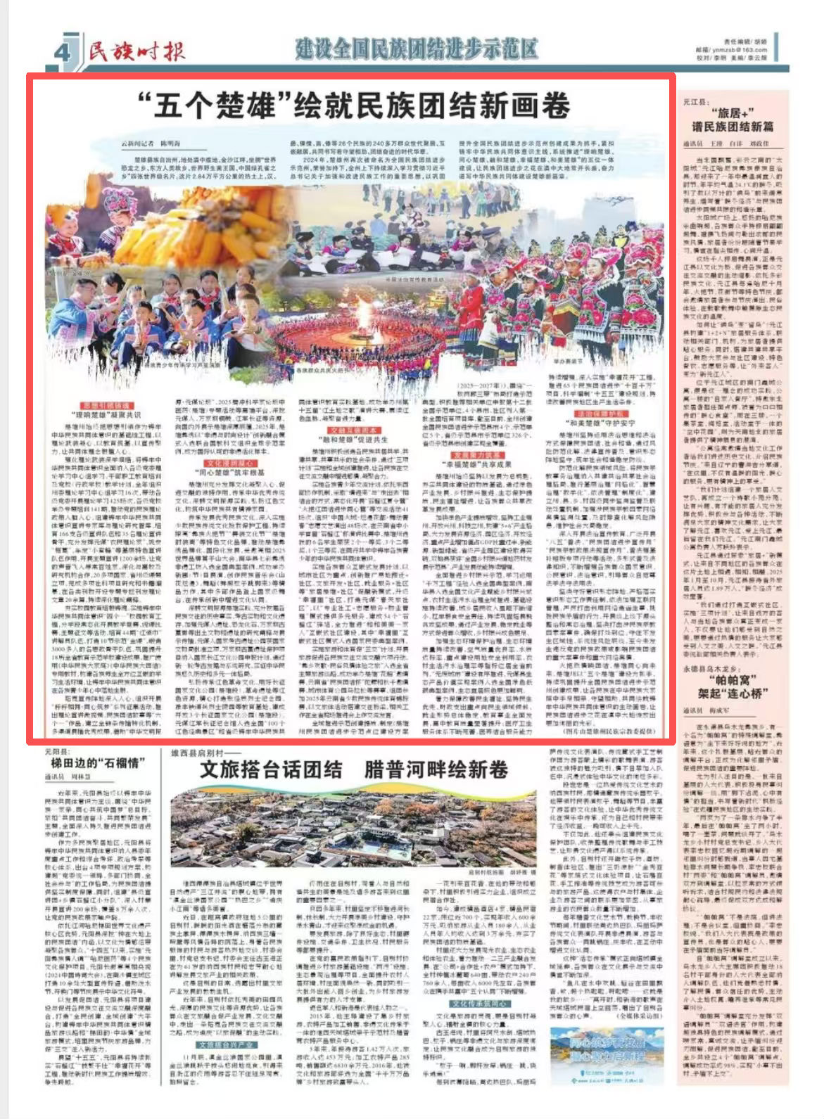 全域推进示范创建提质。制定《楚雄州民族团结进步示范点位建设方案(2025—2027年)》,围绕“一核两廊三带”布局打造示范典型。积极推荐相关单位申报第十二批全国示范单位,4个县市、社区列入第一批全国培育项目库。截至目前,全州创建全国民族团结进步示范县市4个、示范单位5个,省级示范县市示范单位326个,省级示范县市创建实现全覆盖。