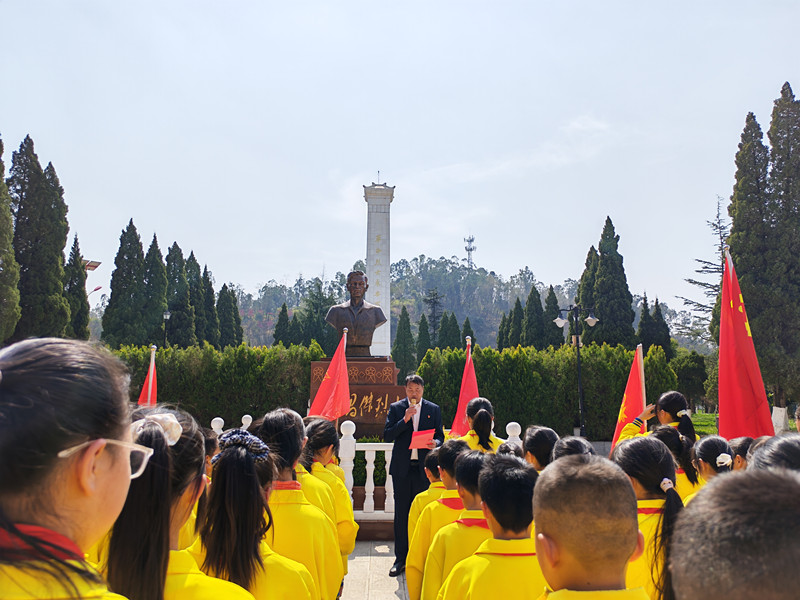 当日下午,该校全校在职党员同志和六年级全体师生到牟定县党建文化主题公园开展主题教育实践活动。在毕昌杰烈士铜像前,牟定县茅阳第二小学党总支副书记、校长杨家贵以“学习‘两会’精神,强化使命担当”为题,给大家讲授了一堂意义深远的微党课,教育引导同学们要坚定信念、心怀家国,要助人为乐、友善待人,要刻苦学习、勇于拼搏,要勤俭节约、艰苦奋斗。党员同志还向各班学生讲述了毕昌杰、曹庆功等牟定籍革命先烈的英雄事迹,并组织学生对革命烈士铜像、宣传栏等设施进行了擦拭保洁。