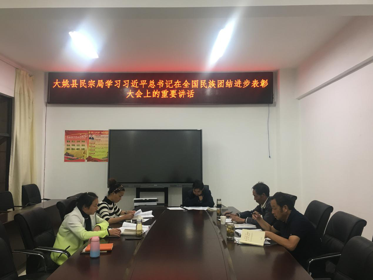 | 大姚县民宗局及时传达学习习近平总书记在全国民族团结进步表彰大会上的重要讲话精神 | |
