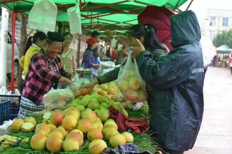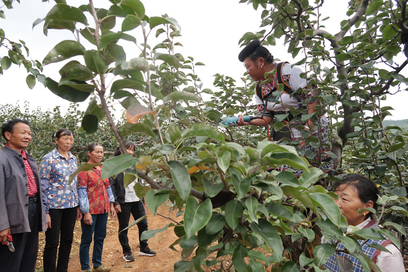 “群众选我当代表,我要争做他们的带头人,要带领群众让荒山披上绿装,让小小树苗变成摇钱树,让大家都过上好日子” 宝剑锋从磨砺出,梅花香自苦寒来。今年52岁的苗族妇女王美芳,1979年初中毕业后,就跟着父母在家里种田,日出而作、日落而息,一年到头辛辛苦苦,仅能维持生活的温饱。1990年,王美芳带头承包了和平镇大德村外一座叫大磨坟的荒山,带着一家人扛着锄头、拿着镰刀,起早贪黑、顶风冒雨,除草移石、埋土填沟,建起了和平镇第一个占地48亩的规范化水果种植示范园。通过近30年的打拼,曾经靠赶马驮梨到武定卖的她,如今成为了颇有名气的优质水果种植和黑山羊养殖示范户,家中有购置了3辆车、一台挖机,年收入达20多万元,产品远销富民、禄劝、武定等地超市及周边地区。