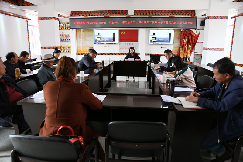 本网讯(鲁泽华 民族时报全媒体记者 陈明海)宣誓、学习、辅导……,10月15日下午,双柏县委统战部县民宗局联合党支部全体党员和干部职工齐聚县民宗局大会议室,开展“不忘初心、牢记使命”主题教育第二次集中学习暨党支部主题党日活动,再次回望初心使命,做实党支部学习教育,持续推动主题教育深入开展。在宣誓活动上全体党员在党支部书记郭存兰的带领下,面对鲜红的党旗庄严宣誓,对党忠诚,为共产主义奋斗终生。使全体党员再一次经受思想上的升华和洗礼,激发了党员的荣誉感和责任感。