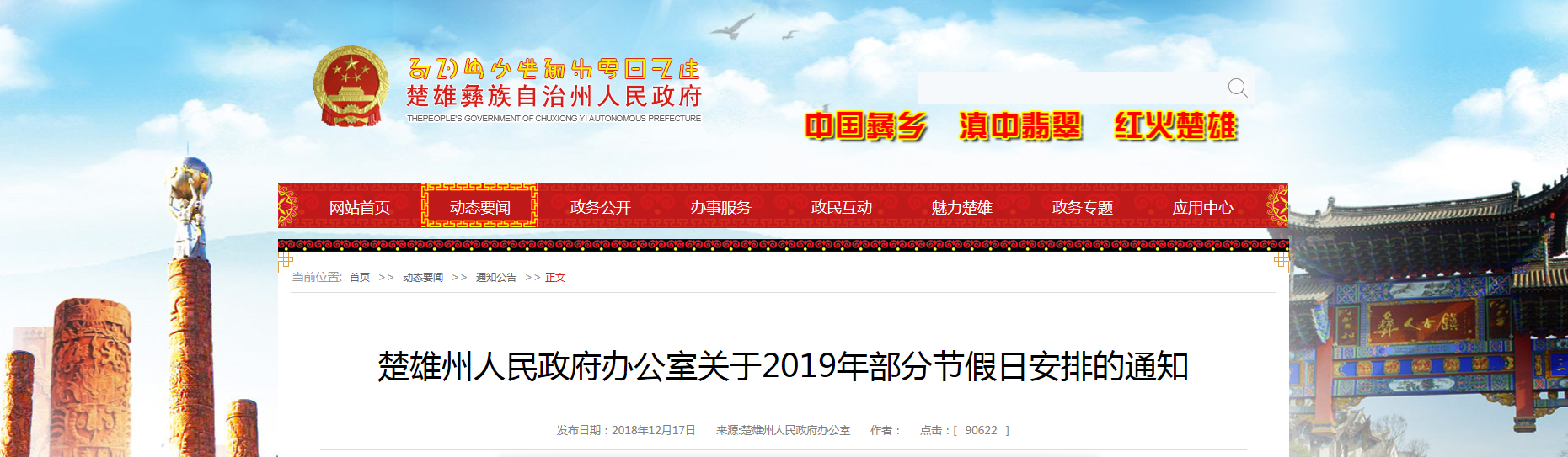 | 2019楚雄彝族自治州彝族年放假通知 | |