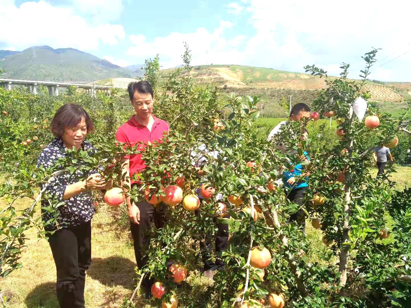 示范扶持,引领带动全面发展 为使贫困群众学有榜样,赶有目标,禄丰县人大常委会在组织动员群众普遍种植的基础上,在各村组重点培树了像普学江、普学惠、谷正贵、鲁云安等18户种植管理示范户,广泛宣讲他们的先进事迹,让各村组群众都有跟学的榜样。为示范、引领、带动整个村委会走上规模化产业化发展的路子,禄丰县人大常委会多方争取,在水务、农业、林草等各部门的大力支持下,先后投入资金30余万元,在河口村委会花猫咀村小组,建起了50亩软籽石榴种植示范基地,基地实行现代化管理,建有看守房、积水池、灌溉池、滴灌等设施,聘请人员专门管护,定期不定期组织常委会机关干部进行劳作,学习种植管理实作,提升干部职工实践能力和入户指导的水平和质量。经常性组织各村组群众到基地学习观摩,就地就近接受“看得见”、“零距离”、“在身边”的现场培训教学。