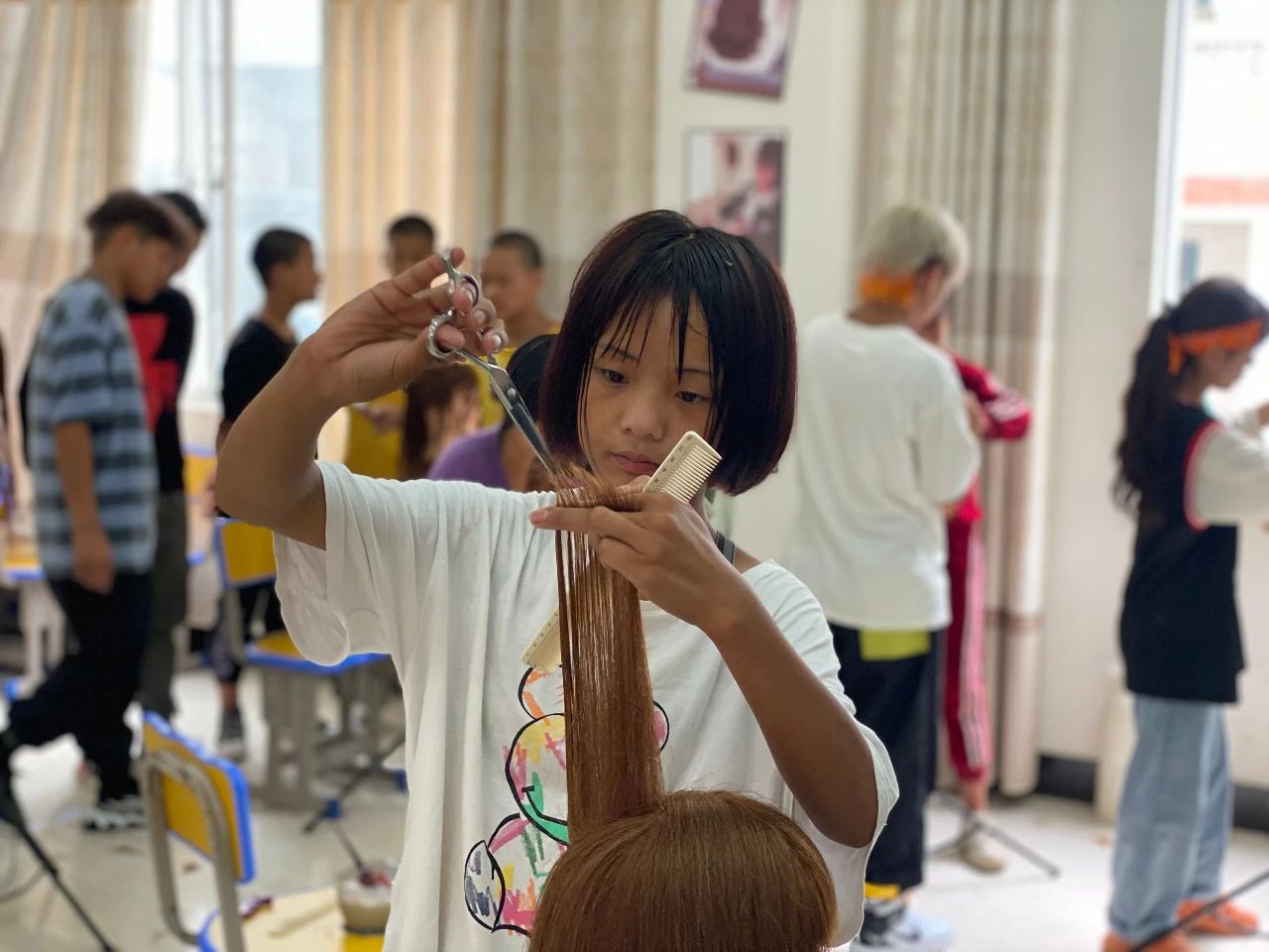 福贡县“普职教育融合班”学生在上技能课。李寿华 摄 针对劝返回来的学生起点低、起步晚、极易流失的实际,福贡县创造性开办了“普职教育融合班”,把义务教育和职业技能教育结合起来。截至2020年6底,普职融合班共开办6个教学班,让306名学生获得了学习的“新机会”。据介绍,到目前已有206名学生学成毕业。其中送到中等职业技工学校28人、省外就业64人、在县内务工46人。