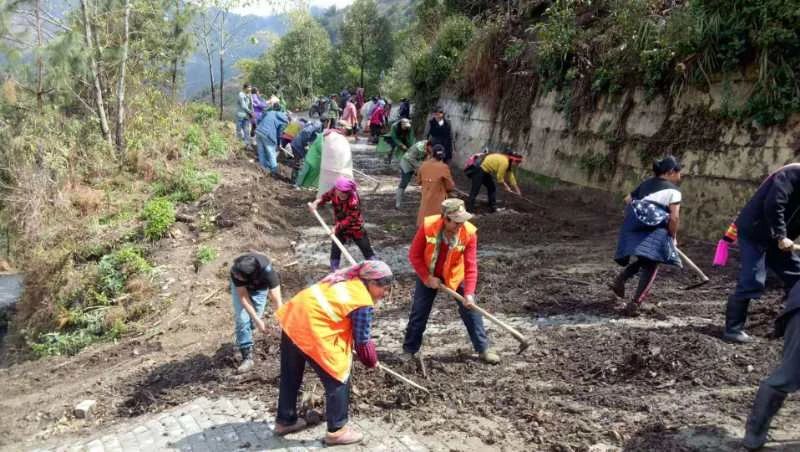 福贡县腊马洛村群众清理通往村委会的路面。王丽梅 摄 除了挂牌作战抓落实,福贡县还部署交叉作战找差距。57个贫困村既有挂牌作战责任人,又有交叉作战负责人、作战责任人;既要统筹好挂牌作战村攻坚工作,又要找出交叉作战村的短板弱项,在相互找差距中取长补短、互帮互助、共同提升。 为精准掌握未出列村问题不足和整改推进情况,福贡县建立了周报机制。30个未出列村每周一报,挂牌作战责任人聚焦所负责村“两不愁三保障”挂图作战“短板”问题和县扶贫开发领导小组安排重点工作,进行每周一总结、一分析、一整改、一报告,确保各项指标顺利达标。 福贡派出9个专项督查组,对各级各部门落实脱贫攻坚责任情况进行督查检查,月末通报考核排名。截至7月,先后有27个脱贫攻坚成效显著的单位获得了流动红旗,25个不认真履职尽责的单位受到了黄牌警告。 在挂牌作战中,福贡县扶贫办、人社、水利等各部门紧盯目标任务,精准找实、系统分析存在短板弱项,及时制定本部门补短板工作方案,围绕补短板工作对乡镇、贫困村加强脱贫攻坚业务指导,确保各项指标顺利达标。 在“大走访大排查”中,福贡县所有干部职工共计2999人次,下沉到脱贫攻坚一线,进村入户、攻坚决战,不仅走访所有的建档立卡贫困户,还覆盖走访了8435户非建档立卡贫困户。 聚焦重点,合力攻克最后堡垒 脱贫有多难,扶贫干部就有多拼。 聚焦“两不愁三保障”、易地扶贫搬迁、农村危房改造、义务教育控辍保学等工作存在的短板,福贡县组建了“党员先锋突击队”“背包工作队”“巾帼突击队”“民兵突击队”“志愿服务暖心团”等各类专项工作队,携手贫困群众攻克最难攻的堡垒。 “背包上山、牵手进城。”针对部分群众心存顾虑不愿搬迁的问题。今年2月,784名党员干部组成背包工作队,深入大山,吃住在村,以“你不搬迁,我不下山”的坚守,进行易地搬迁动员。截至今年5月底,福贡所涉及的18个易地搬迁点已全部完成搬迁入住。