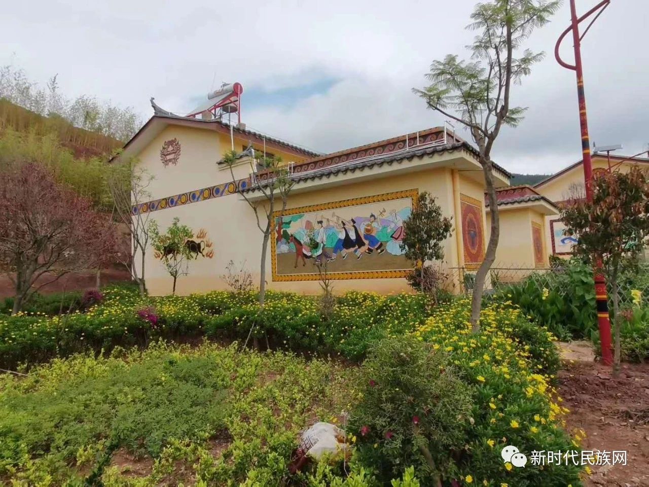 行走在挖铜新村,家家户户墙面上的彝族彩绘让村容村貌焕然一新,每家每户小院里栽种的瓜果蔬菜缀满枝头,宽敞的村道整洁干净。挖铜新村85岁的脱贫户罗家正在家门口的写字桌上用水彩笔认真地画画。2017年10月,罗家正和家人搬进了盼望已久的新居,每天绘画幸福挖铜生活成了老人最爱做的事情。罗家正把房子和家门口的太阳能路灯、小广场都画入了他的画中,“村里这条水泥路白生生呢,小轿车可以直接开到门口啦,幸福生活来之不易,没有共产党就没有幸福生活。”指着画中的景物,罗家正老人感慨道。
