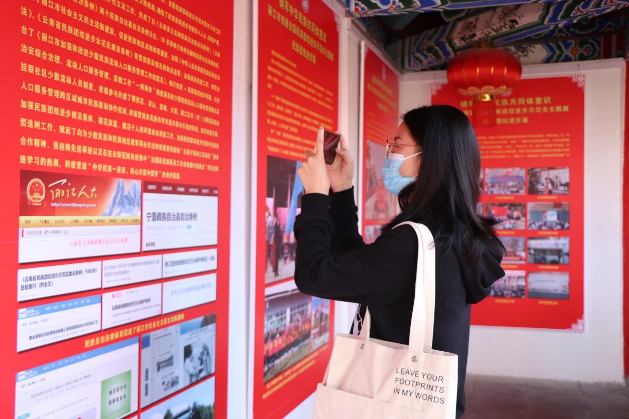 展览还吸引了众多丽江市民及游客前来参观,来自云南曲靖的游客马女士就是其中一位。“我非常喜欢丽江,已经来旅游过3次,以前只知道当地的自然环境和气候好,通过这次展览发现丽江的民族团结进步创建工作做得也特别好,生活在丽江的人民特别幸福。”