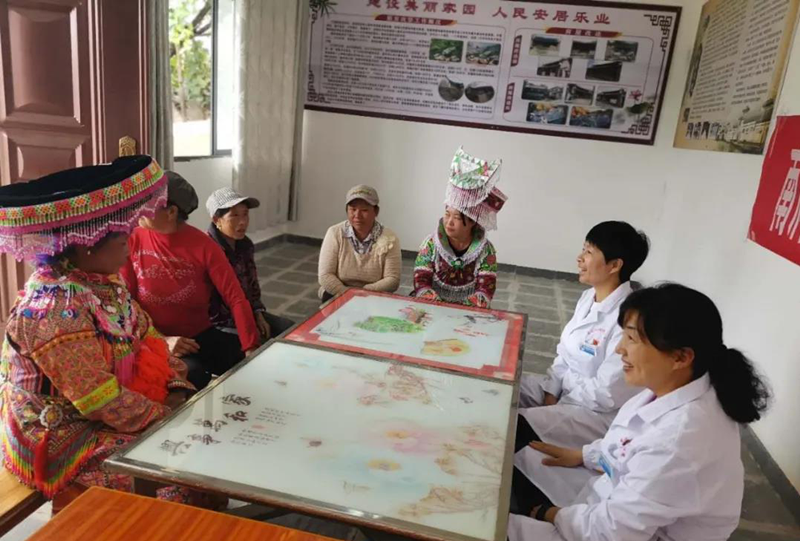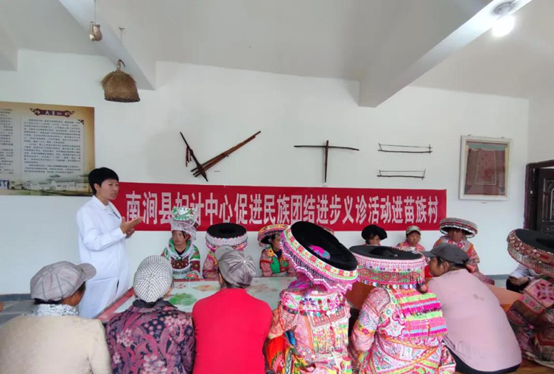 为深入贯彻党的十九大和中央民族工作会议精神,推动新时代全面深入持久开展民族团结进步创建工作,促进全社会铸牢中华民族共同体意识,加强各民族交往交流交融,南涧县妇幼保健计划生育服务中心党支部在书记胡绍美的率领下,组织了五官科、妇产科、儿科、健康教育科的医院专家,组成健康服务医疗专家组,于10月20日,深入到碧溪乡新虎村委会熊家苗族村,为当地18户苗族群众开展健康服务义务诊疗活动。