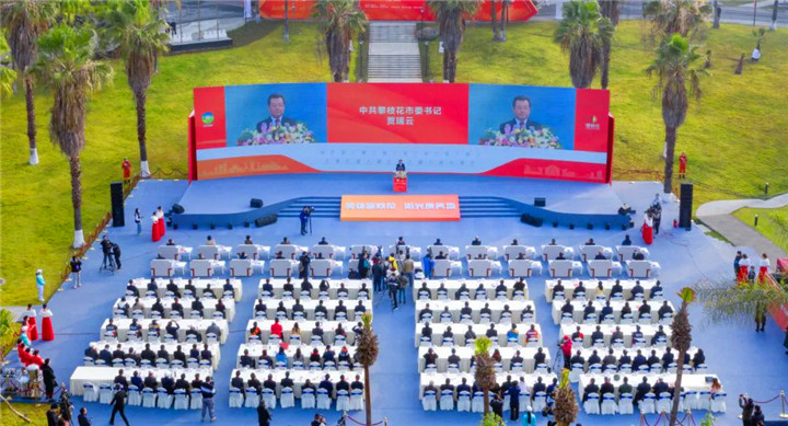第五届中国康养产业发展论坛在攀枝花市隆重开幕。王东摄影 新时代民族网讯(攀枝花日报 记者 吴禹涵 云南经济日报记者 杨德祥)莫问春曦几更还,腊月犹是不觉寒。乘着全面开启社会主义现代化国家新征程的东风,沐浴着“英雄攀枝花?阳光康养地”的阳光,1月18日上午,以“健康中国,康养产业做什么”为主题的第五届中国康养产业发展论坛在攀枝花市红格假日酒店若水印镜广场隆重开幕,在常态化疫情防控背景下,河北秦皇岛、重庆石柱县等30余个康养产业联盟城市和友好城市数百名嘉宾、专家,通过线上或线下参与的方式齐聚这场盛会,共同探寻“健康中国”战略下康养产业发展新路径,为康养产业在“十四五”期间实现跨越式发展注入新的动能。 全国政协副主席、民革中央常务副主席郑建邦线上出席并讲话。 四川省政协党组副书记、副主席崔保华主持开幕式。 中共攀枝花市委书记贾瑞云致辞,中共秦皇岛市委书记朱政学线上致辞。 中共攀枝花市委副书记、市长虞平发布攀枝花市康养产业标准体系、监测制度成果。 四川省政协副秘书长、办公厅主任杨程富,市人大常委会主任黄正富,市政协主席李群林,市委副书记彭映梅出席。 四川省民政厅党组成员、副厅长邓为,民革四川省委专职副主委曾蓉,四川省文化和旅游厅二级巡视员王兵,四川省政协医卫体育委员会专职副主任凌娟出席。 广西防城港市、贵州黔西南州、四川凉山州等市州向论坛开幕致贺信贺电。 第五届中国康养产业发展论坛采取线上线下相结合方式举办,由民革中央和四川省政协主办,民革四川省委、中共攀枝花市委、中共秦皇岛市委、攀枝花市人民政府、秦皇岛市人民政府承办。论坛共安排了开幕式暨主旨演讲、参观《健康中国康养生活——中国康养产业发展论坛纪实》展览、“两江三桥”三线文化景观启动仪式和参观考察等线下活动和丰富多彩的线上活动。 腊月的攀枝花,虽历经两次寒潮的侵袭,但满城的炽热情怀始终高涨,这是一方被阳光眷恋的土地,蓬勃的活力和好客的个性是深嵌于骨肉、流淌在血液中的城市气质,7414平方公里的每一川江河、每一棵草木、每一座山峦都在跃动、呼唤,与冲破云雾的阳光重逢拥抱,向所有来宾展示盛满冬日暖阳的城市魅力。 18日上午,修葺一新的红格假日酒店若水印镜广场,大屏幕先后播放《英雄攀枝花·阳光康养地》和《健康中国康养生活——中国康养产业发展论坛纪实》宣传片,前来参加论坛的嘉宾陆续落座,现场气氛十分热烈。 9时30分,第五届中国康养产业发展论坛隆重举行开幕式。郑建邦宣布论坛开幕。