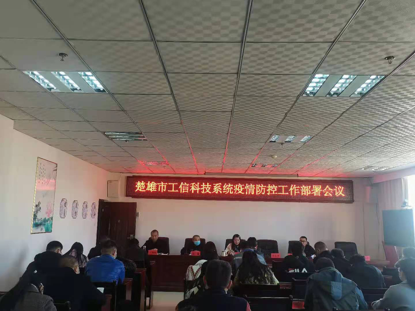 1月25日下午,楚雄市工业信息化科学技术局召开了全系统疫情防控工作部署会会议。本次会议由楚雄市工信科技局副局长李剑波主持,楚雄市疾控中心主任医师金鑫就当前疫情防控相关工作对参会企业进行了培训和要求。市本级规模以上工业企业、重点招商引资在建项目负责人及市工信科技局相关工作人员40余人参加了会议。 会议首先由楚雄市工信科技局党委书记、局长钱颖作工作部署。钱局长指出,目前国内疫情有所反弹,各企业要强化政治责任,提高思想认识,克服麻痹、侥幸心理,推动企业在复工复产中做好“外防输入,内防反弹”的疫情防控工作。要全面压实属地责任和企业法人主体责任,强化管控措施,督促员工做好个人防护,配合好疫情防控工作。