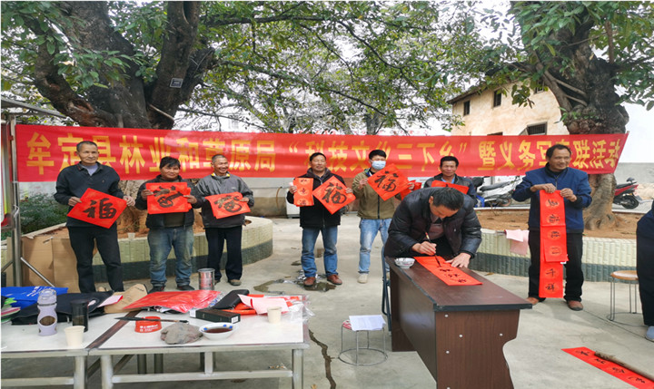 新时代民族网讯(鲁光财 云南经济日报记者杨德祥)在牛年新春佳节来临之际,带着对新春美好的祝福,牟定县林业和草原局邀请县书法协会的4名书法家和7名林业科技人员深入到挂点扶贫的戌街乡老纳村委会开展“科技文化三下乡”活动,深受当地群众好评。