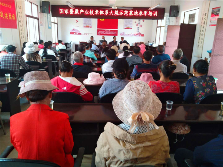 图为大姚县蚕桑科技人员开展蚕桑培训现场 不断提升农村人居环境。全面整治农村生活垃圾、生活污水,集镇基础设施大幅改善,乡镇垃圾处理设施实现全覆盖,村庄生活垃圾有效治理率达100%,污水处理率达91.24%。扎实开展农村“厕所革命”,改建行政村公厕29座、农村无害化卫生户厕16582座;有序推进村庄规划编制和建设管理,实现村庄规划编制和土地规划建设专管员全覆盖。落实村庄保洁员制度,调整完善村规民约,全县1391个自然村全部配备村庄保洁员,覆盖率为100%。全县9个村获评云南省美丽村庄,农村人居环境整治三年行动顺利通过上级评估验收。深入实施农药、化肥使用量零增长行动,开展病虫害统防统治与绿色防控融合示范基地建设。 深化农村改革推动乡村振兴。完成了全县农村集体产权制度改革工作,开展了资产量化和股权配置,组织对全县有经营性资产的249个村组开展了折股量化,其中村(社区)128个,村民小组121个。249个村组量化资产合计折资10542.75万元,其中村级3732.16万元,组级6810.59万元。