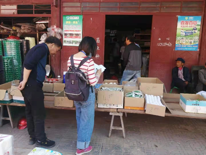 3月中旬,大姚县农业农村局农产品质量安全监管工作分管领导、执法大队、农产品质量安全监管股一行深入湾碧乡、铁锁乡、昙华乡等乡镇开展农资打假专项治理行动。一是对农资市场进行了一次全面的清理排查;二是对售卖的不合法的农产品进行查处,对禁用药物和残留超标的物资立即进行立案处理;三是严厉打击虚假开具合格证等行为,提升带证农产品的市场认可度,推进合格证信息化管理,建立开证主体信用评价机制。