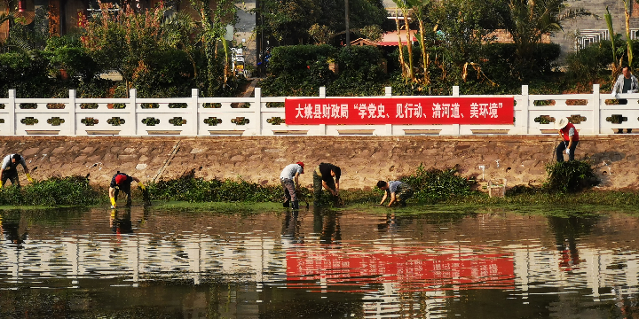 针对本次河道清理,大姚县财政局领导班子带头,共发动党员干部职工30余人参与,大家积极克服水深泥陷的畏难情绪,踊跃穿上水裤下河徒手拔水草、捞浮渣,不怕苦不怕累挥舞锄头镰刀清垃圾、除杂草。一筐筐杂草清理上岸,一片片水体波光荡漾,在大家的齐心努力下,共清除杂草、