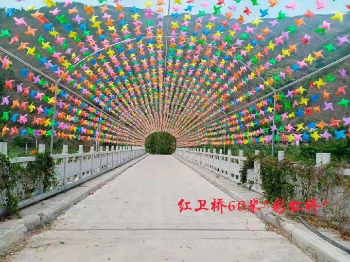 新植一批竹子、芭蕉、榕树,建成芒果大道9公里、凤凰大道5公里,建成红卫桥村集镇300亩,包括商住商贸区、文化活动中心、热带水果采摘体验区、冬早蔬菜育苗基地、生态垂钓池等。