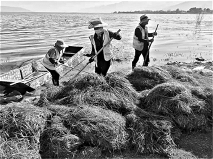 “五一”假期杨国全(中)和同事正在用网兜和钉耙将漂浮杂物的水草拉上岸。 【阅读提示】 为了守护洱海的清澈,周边村民每天巡查湖岸滩地,清理腐质层、打捞水 草杂物,成为洱海的“保护神”和“美容 师”。他们身着橙色工作服,用一抹橙色色守住美丽乡愁。 大理的美,美在洱海;洱海的美,美在清澈。如今的洱海边,活跃着一个特殊的群体,他们被称为橙色滩管员,为洱海独有。他们早上披着晨曦出门,傍晚踏着夕阳回家,携着自购的工具,或划船或步行,沿着漫长的洱海岸线,清理水上和岸边的垃圾。 希望游客看到的洱海美丽干净 5月5日上午9点,记者在大理市海东镇玉龙河边见到59岁的洱海滩地管理员陈君吉时,他已经工作了两个小时。 “我每天清晨7点出门工作,中午12点回家吃午饭,下午2点继续工作,5点左右下班回家,‘五一’假期我比以往多干1小时收工回家。从在这个工作岗位开始,我已经10年没过过节假日了,想陪家人是肯定的,但洱海的环境卫生耽误不得,而且假期有很多游客来大理,我希望他们看到的洱海是美丽的、干净的。所以久而久之假期不休息也成了我的习惯。”他说。 2010年大理市海东镇向阳村村民陈君吉自愿报名,当上了一名洱海滩地管理员,从那时起,他就一直坚守在滩地管理员和水面保洁员的岗位上。 生在洱海边,长在洱海边,和许多同辈人一样,陈君吉在青年时期就以打鱼为业,后来又和媳妇在洱海里进行网箱养鱼。 对于陈君吉来说,清理洱海滩地边的腐质层是件很不容易的事,因为每天都要清理8吨以上,而且腐烂的腐质层还会发出阵阵腐臭味。清理时,都要穿着雨裤、雨鞋浸泡在水里,冬天天气比较冷,水的温度也很低,一泡就是几个小时,有时候腿被冻得僵硬,长年下来很多人都会腿疼,也得了风湿病。 “小时候我们家住在洱海边,海边有沙滩,死亡的水草被风浪吹到沙滩上,起到了自然净化的作用。那时候洱海水是I类水,可以直接喝。”陈君吉说,“最近20年,沙滩没有了,洱海水质慢慢不行了,我自愿报名来做滩地管理员,当时一个月工资就500元,我的想法就是从我个人做起保护好洱海,不愿意洱海被污染。 每天巡查湖岸,打捞杂物数吨 记者走进大理市湾桥镇古生村,这个位于洱海西岸的秀美白族渔村,只见幢幢白族民居白墙青瓦、水墨花鸟整洁的街道边鲜花盛开。 清晨格外宁静,还不到8点,保洁员何泉清在白族传统服装外,套上了保洁员专用橙色马甲,收拾好清扫工具走出家门,开始一天的清扫工作。 “昨晚起风了,沿湖淤积的水草、水藻和杂物特别多。”何泉清和杨长举站在湖水中用网兜和钉耙将一团团裹杂着烂树叶和漂浮杂物的水草拉上岸,何泉清负责把这些打捞物运到垃圾箱,“这些水草杂物每天都要及时清运,留在岸边腐烂了会影响洱海水质。”看着被打捞上岸的水草和漂浮垃圾如小山一样堆放在路边,滩地管理员杨国全告诉记者,“每天都要打捞,不打捞完心里就不踏实,洱海真的污染了,子孙也就没活路了。” 风大的时候岸上的垃圾会被吹到洱海里,杨国全负责的范围垃圾也会比较多;冬季还需要划着船打捞漂浮的海草,当一个人忙不过来时,得请求组里其他滩地管理员前来帮忙。 “这份工作没有周末,周末游客多,丢的垃圾也多,所以更忙,这份工作能带给我固定的收入,作为村民还能尽自己的一分力量保护洱海,扮美大理的旅游形象,我觉得挺有意义的。”杨国全说。 除了滩地管理,还有沿湖巡查。擅长划船的村民何利成也主动加入洱海保洁清理的工作中。“我们村里人人都是义务保洁员,只要是保护环境的工作,人人都要尽力。” 小小的保洁船穿行在沿湖芦苇丛中,保洁人员仔细搜寻漂浮和沉落在水中、水底的垃圾杂物,打捞起来并运到岸边,巡查一趟要1个多小时。何利成和同事们每天要对近2公里长的湖岸进行巡视管理和保洁清运,水草杂物的打捞量达2吨多,夏天还要更多。在波光粼粼的湖面,留下了他们辛勤的身影。 愿万顷清波 “我主要负责新溪邑沟至茫涌溪的环境卫生保洁工作,同时我也是湾桥镇滩地管理员、河道管理员和路面保洁员的组长,不仅要负责统筹协调他们的工作,每天还要对湖边沿线6.4公里滩地进行巡查。”洱海滩地管理员赵兰兰边捡拾着垃圾边跟记者交谈,“我在洱海边生活了一辈子,14岁起就靠打鱼为生,如今虽说身份变了,但我对洱海的感情依然深厚,我认为洱海如果没有保护好就什么都发展不起来。” 赵兰兰每月工资750元,这个数字在当地并不让人羡慕。家里需要照应,赵兰兰也曾动过不干了的念头。但最终还是坚持下来了,“因为我喜欢这份工作,看着洱海干干净净的,心里舒服”。更让她高兴的是,如今村民的环保意识大大增强了。 “我们海边人,世世代代享受着洱海丰富的资源,吃也靠洱海,喝也靠洱海,洱海好了,受益的是我们,洱海不好,受害的是大家。”她说。 如今的洱海,水质清澈干净,空气清新怡人;如今的古生,青山秀水,庭院悠悠,自然风光和白族特色建筑相得益彰。 提起村里的变化,湾桥镇中庄村委会党总支副书记黑贵成深有感触,村里有了保洁员、河道管理员和滩地管理员这些洱海的“保护神”和“美容师”,洱海肯定更加清澈。特别是现在,人们的洱海保护意识不断增强,过去垃圾随手抛,现在随时拾垃圾,进洱海的垃圾少了,水自然也就好了,村里当然也就更漂亮。 |