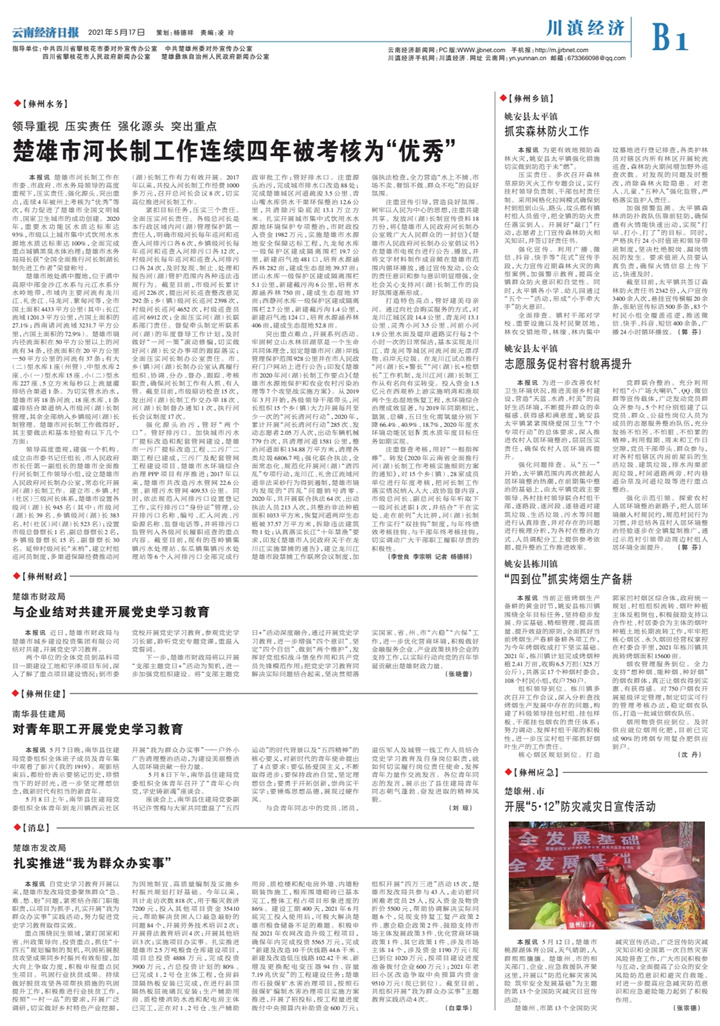 楚雄市河长制工作连续四年被考核为“优秀”