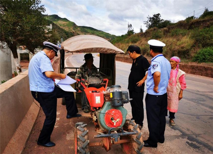 新时代民族网讯 (王家艳 云南经济日报记者 杨德祥)“你好,大爷,我们是农业农村局的,请你把微耕机停靠路边,不得载人,”“镇上通知你们进行农机安全培训没有、是否与你们签订农机安全生产责任书?……”县农机监理站站长一边劝导,一边向驾驶员发放微耕机使用告知书。