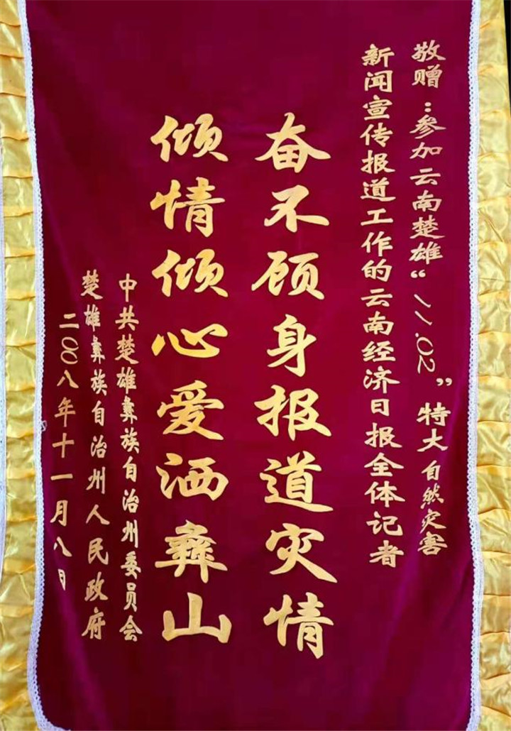 新时代民族网讯(云南经济日报记者 杨德祥)我从事新闻采写工作近40年,在云南经济日报当记者25年,经常有人问我,你从粮食工人成长为省报记者,决窍是什么?经验是什么?我总是耐心的告诉他们:“热爱就是老师!” 到目前为止,我22年主编《云南经济日报·楚雄经济》、《云南经济日报·川滇经济》特刊1300多个版面((每个版面7500字))。我先后在省内外100多家媒体发表稿件,被中央、省、州多家报刊、电台、电视台等媒体采用各类稿件8900多件次(有的一稿多用),70多次获中央、省、州各类奖励。其中,2002年8月《彝山忠魂——记孔繁森式的好干部臧金贵》获得了第十五届中国经济新闻大赛好新闻三等奖。我由于多次积极参加抗震救灾、自然灾害抢险报道工作,2008年11月8日,中共楚雄州委、州人民政府给我颁发了“奋不顾身报道灾情,倾情倾心爱洒彝山”的锦旗,荣誉鞭策着我奋力拼搏。