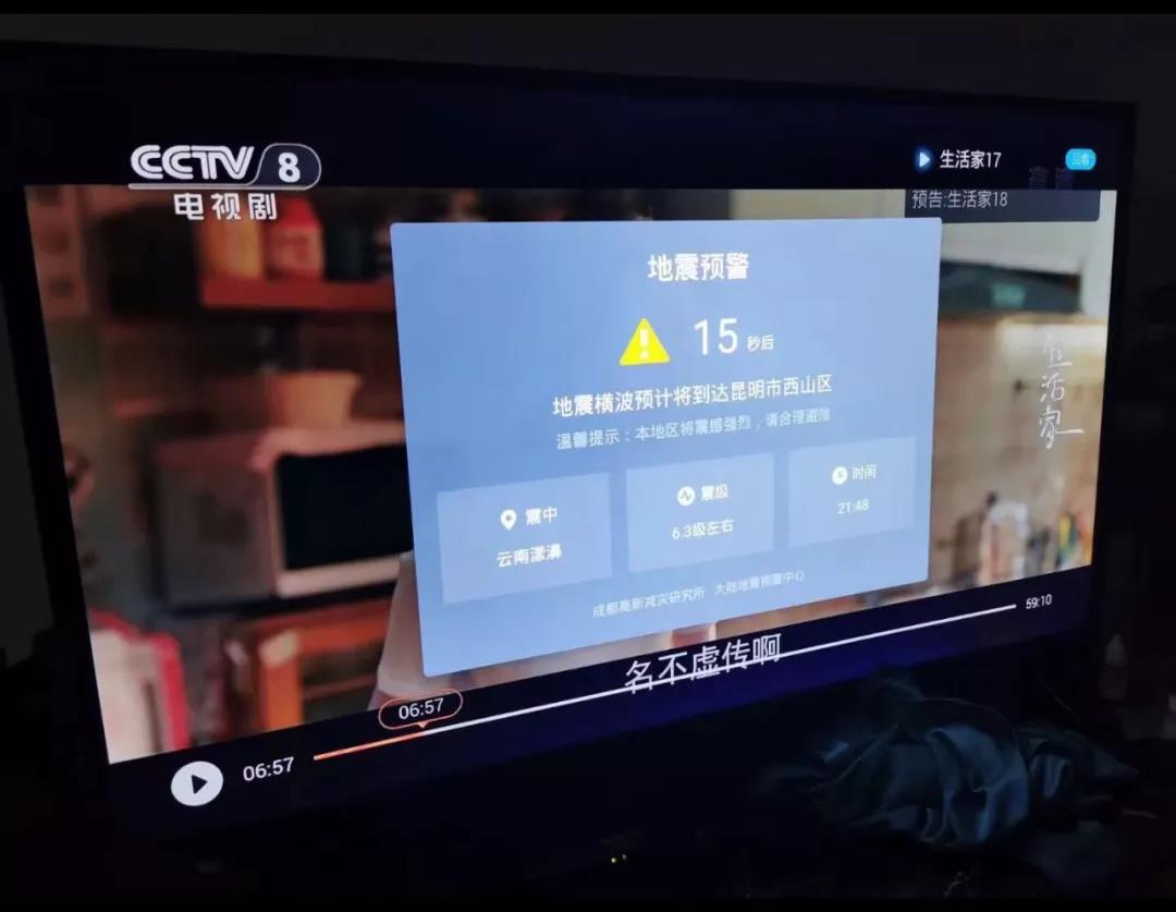 地震发生时居民家中电视上弹窗地震预警 供图 除云南外,四川全省已经安装了548台预警专用终端,京津冀地区安装了461台预警专用终端,北京、天津和河北唐山、邢台和张家口等地区已具备了电视和应急广播等地震预警试点服务能力,并将为雄安新区建设和冬奥会召开提供地震安全保障。福建全省已经安装了1.8万台预警专用终端,同时通过福建地震预警手机App、PC客户端等自有平台以及福建省突发事件预警信息发布平台、电信、移动、联通和广电网络等第三方转发平台向用户提供地震预警信息服务。 据介绍,国家地震烈度速报与预警工程于2015年批复立项,2018年全面启动实施,建设15000多个站点,将在华北、南北地震带、东南沿海、新疆天山中段以及西藏拉萨周边五个重点地区实现秒级地震预警能力。项目将于2022年底完成全部建设任务,为社会公众、重大基础设施和生命线工程、各级政府以及科研院所提供信息服务,更好地为人民生命安全和国民经济发展保驾护航。 地震预警是如何实现的? 同一城市居民收到的预警时间相同吗? 看到预警信息时该怎么办? 如何在电视上收到地震预警信息?