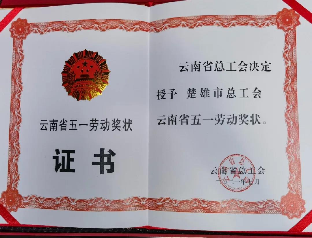 | 喜报!楚雄市总工会荣获“云南省五一劳动”奖状 | |
