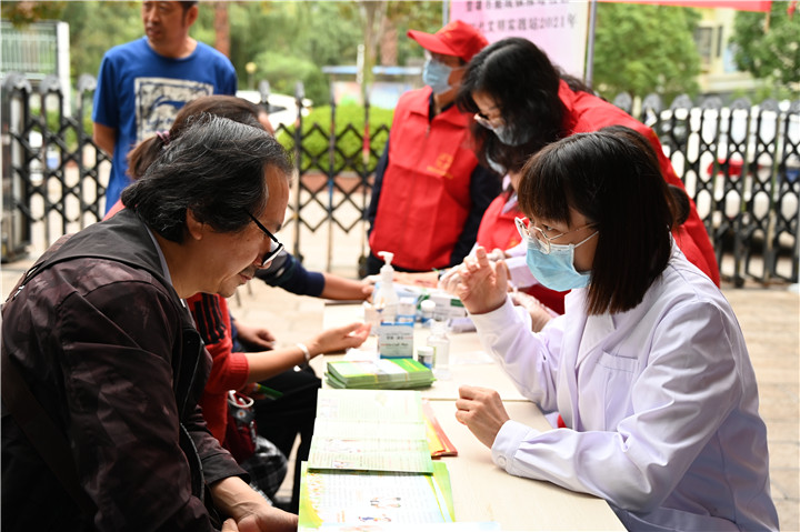 义诊现场,党员志愿者们分工明确,相互协作,量血压、测血糖、发放宣传册,普及健康知识和技能,耐心讲解和回答居民咨询问题,同时积极宣传医疗政策、基本预防措施。据统计,本次义诊服务活动,累计为30人次测量血压,20余人测试血糖,发放宣传手册60余份,让居民在家门口就能享受到义诊、健康咨询等卫生健康服务,增强了居民的健康意识,受到了群众的一致好评。