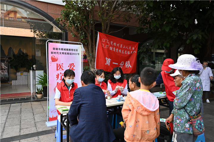 新时代民族网讯(楚雄州第二人民医院 蒋友勤 李文昌 云南经济日报记者 杨德祥)近日,楚雄州第二人民医院第一党支部组织全体党员志愿者走进雁塔社区,开展“我为群众办实事”巡回义诊志愿服务活动,免费为社区居民开展健康志愿服务。