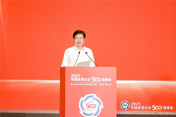 新时代民族网讯(今日头条早安China 云南经济日报记者杨德祥)9月25日,我国最具影响力的民企盛会——2021年中国民营企业500强峰会在湖南长沙盛大举行。本次峰会由全国工商联和湖南省人民政府共同主办,全国政协副主席、全国工商联主席高云龙,湖南省委书记、省人大常委会主任许达哲,中央统战部副部长、全国工商联党组书记、常务副主席徐乐江,工信部副部长徐晓兰,重庆市原市长黄奇帆等多位领导和企业嘉宾出席会议。