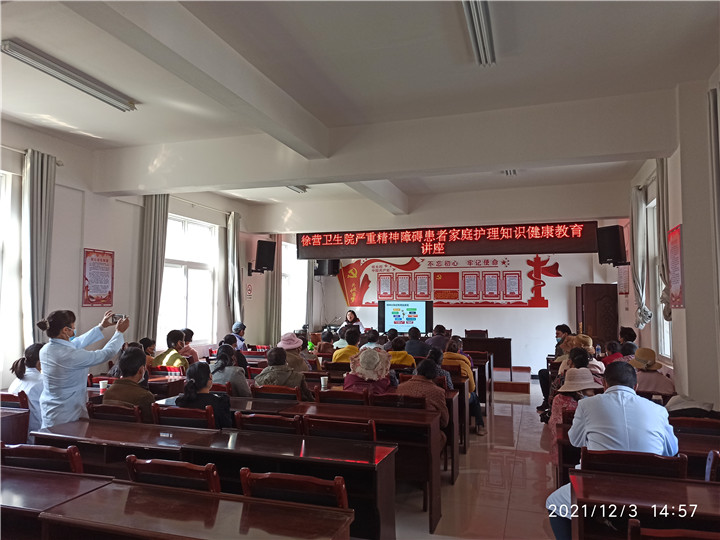 楚雄州第二人民医院临床心理科两位临床经验丰富的吴国平、董青主任进行了现场义诊活动,通过认真询问病史、服药情况、治疗效果等,给出专业的诊疗意见,免费发放药品,共计现场义诊7人,对患者及家属提出的各类问题给予耐心解答。公共卫生科开展严重精神障碍患者家庭护理健康教育知识专题讲座,分别从精神疾病药物不良反应监测知识、家庭护理知识、药物治疗及社区康复等方面进行了讲解,对楚雄州严重精神障碍患者政策保障等方面进行了宣传。河硐村小河上组一名患者因家庭原因不能到场,现场义诊及专题讲座结束后,医护人员们沿着崎岖的山路到患者家中耐心地和患者及家属交流,了解患者近期病情情况,发放所需药品,叮嘱其按时吃药,安心养病,鼓励患者及家属树立信心。