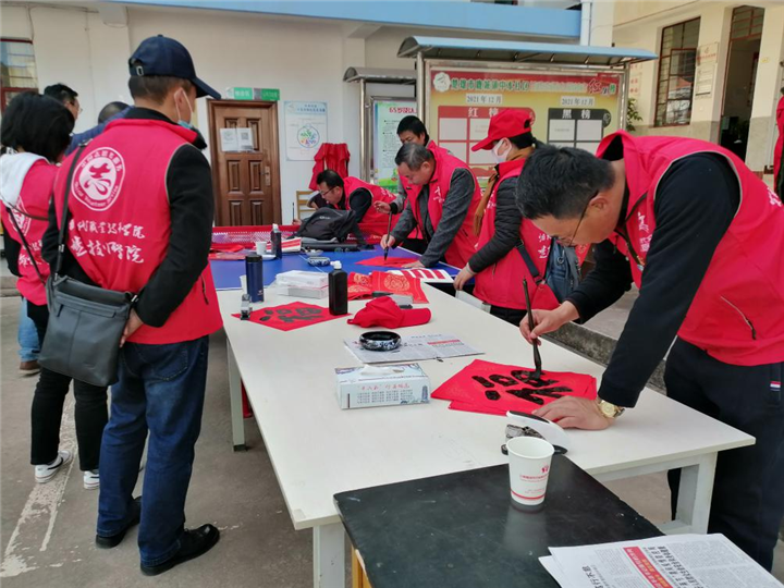 迎新送福写春联,翰墨飘香添年味。社区院子传来了阵阵墨香,迎新春“送春联进万家”活动吸引了众多居民前来参加。活动现场,技师学院的老师们凝神运笔、挥毫泼墨,展现出各种字体的不同神韵,为居民书写春联,送上新春的祝福。短短几个小时,就送出了200多副春联和100余份“福”字,大家纷纷表示:“手写的春联,更有年的气氛!”