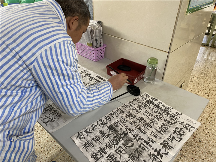 精神疾病跟其他的疾病不一样,它不会让患者感冒发烧,或者打喷嚏、拉肚子,但它严重地给患者的生活造成了影响,让患者忘记了怎么享受生活,获得快乐。在疫情防控的严要求下,住院患者除检查以外的治疗活动都在住院楼里完成,这样一来他们的一天除吃饭、睡觉、打针、吃药以外,有了大片的留白。为了让患者的住院生活变得充实有趣,楚雄州第二人民医院二病区的工作人员在病房里开展“作业疗法”。为丰富病房作业疗法的开展内容,护士长自掏腰包购买了笔墨纸砚、象棋、扑克、乒乓球等;为带动患者积极性,护士长又购买了一些小零食、纸、牙膏等患者所需的生活用品,用来奖励积极参与的患者。带动患者参与作业疗法,使患者最大限度地恢复或提高独立生活能力和劳动能力,以使其能作为家庭和社会的一员过着有意义的生活,这对二病区的工作人员来说不仅是职责所在,更是一种对病人由衷的祝愿。