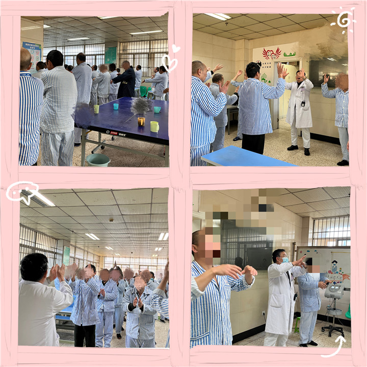 “最好的安慰不在于言辞,而是用行动表示我和你在一起。” 为了促进患者的身心健康和延缓患者社会功能的衰退,培养患者做事的积极性、主动性,科室工疗护士每天都会带领大家一起做手操、打乒乓球、打扑克、读书看报、看电视,每个人都积极的参与,并且乐在其中。