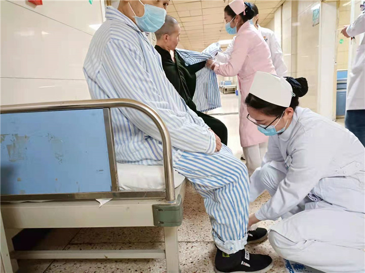 科室职工捐款捐物给患者添加过冬的衣物鞋袜 对于那些因疫情影响或其他原因家属无法前来探视的患者,科室医护人员利用自己的手机微信给病人和家属视频通话,缓解思念之苦,家属更放心。远在老挝万象的李大哥妻子和自己丈夫视频通话后流下了激动的泪水,她说自己在国外一呆就是三年,至今也无法确定归期,丈夫在老年科住院,三年来全靠医护人员的微信视频见面,病人在这里,她放心。