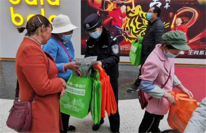 在百草岭大街,大姚县公安局、法院、检察院的同志向沿途群众宣传,公安干警亲切地提醒路过的群众,“非法集资本质是诈骗活动,你想要他的利息,他想要你的本金,千万不能信”;在金城花园小区,教体局、发改局、工信局的同志守在单元门口,向进出的住户宣传;来到永盛农贸市场,年货街上人来人往,市管局、农业农村局、信访局、文化旅游局的同志忙得不亦乐乎,一边发宣传材料,一边提醒群众要认真看看宣传读本;交运局、民政局、司法局、住建局的同志们来到客运站,为春节回家的旅客送上一份贴心提示;税务局、林草局、政务服务局的同志沿县城北街一直到白塔广场,这里是中老年人聚集地,非法集资风险高,一位老人家听了讲解,高兴地说:“我晓得非法集资,以后再也不会吃亏上当了”;人民银行、金融办的同志在家易购超市门口,向前来咨询的务工回乡青年说“打工赚了钱,回家盖新房,千万别去玩投资,一旦损失就血本无归”。