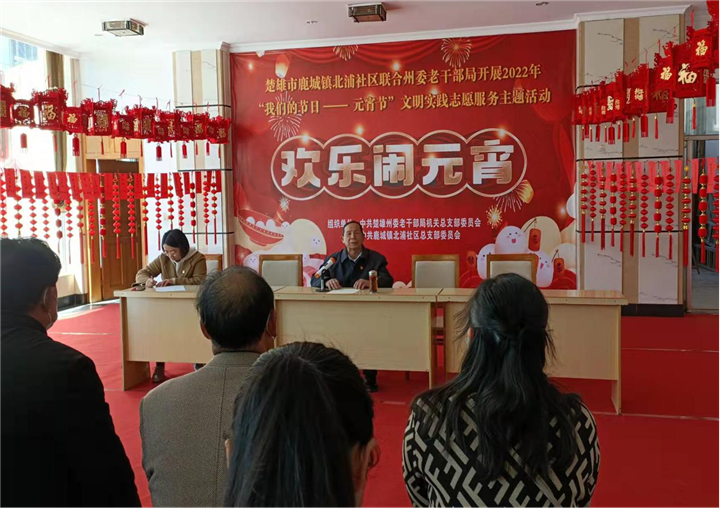 新时代民族网讯(楚雄市鹿城镇高莉 云南经济日报记者杨德祥)在2022年元宵佳节来临之际,为大力弘扬中华民族传统文化和尊老敬老、爱老助老的传统美德,营造浓厚、欢乐、祥和的传统节日气氛,丰富退休老同志和社区居民精神文化生活。楚雄市鹿城镇北浦社区联合楚雄州委老干部局在楚雄老干部活动中心开展“欢乐闹元宵”主题系列活动,本次活动采取“线上报名”、“线下开展”的方式进行。