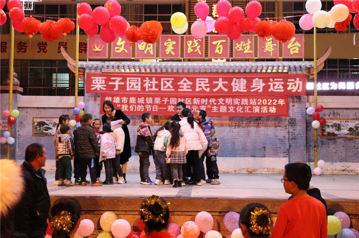 新时代民族网讯(楚雄市鹿城镇栗子园社区 云南经济日报记者杨德祥)“才迎正月贺新春,又逢十五闹元宵。千家万户庆团圆,火树银花不夜天。”在元宵佳节来临、万家团圆的美好时刻,为传承中华民族传统文化,进一步丰富社区居民的精神文化生活,营造浓厚的节日氛围,2月15日,楚雄市鹿城镇栗子园社区新时代文明实践站在社区广场举行2022年“我们的节日——欢乐闹元宵”主题文化汇演活动,共庆传统佳节。