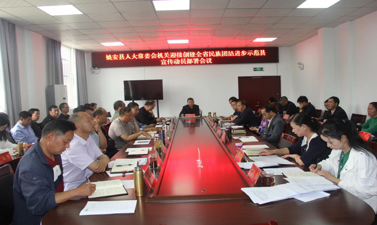 新时代民族网讯(民族时报记者 陈明海)姚安县人大常委会召开职工大会及时学习传达姚安县创建全省民族团结进步示范县迎检工作动员会议精神,对贯彻落实好全县迎检工作会议精神作出动员部署。