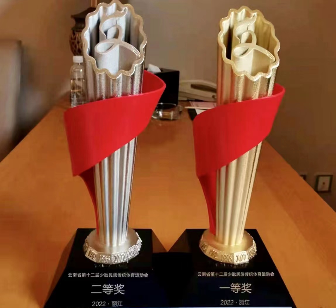 在赛场上,6名陀螺比赛项目运动员不负众望,经过激烈对抗角逐,战胜强劲对手,光荣为楚雄州勇夺陀螺比赛项目男子团体荣获金奖(第一名),陀螺比赛项目女子团体荣获银奖(第二名)。
