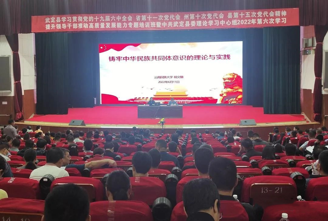 (张玉江 民族时报记者陈明海) 6月11日,武定县在县宣传文化中心举办铸牢中华民族共同体意识专题培训。全县科级及以上领导干部共350多人参加培训,农村基层干部以视频直播的形式参与学习。