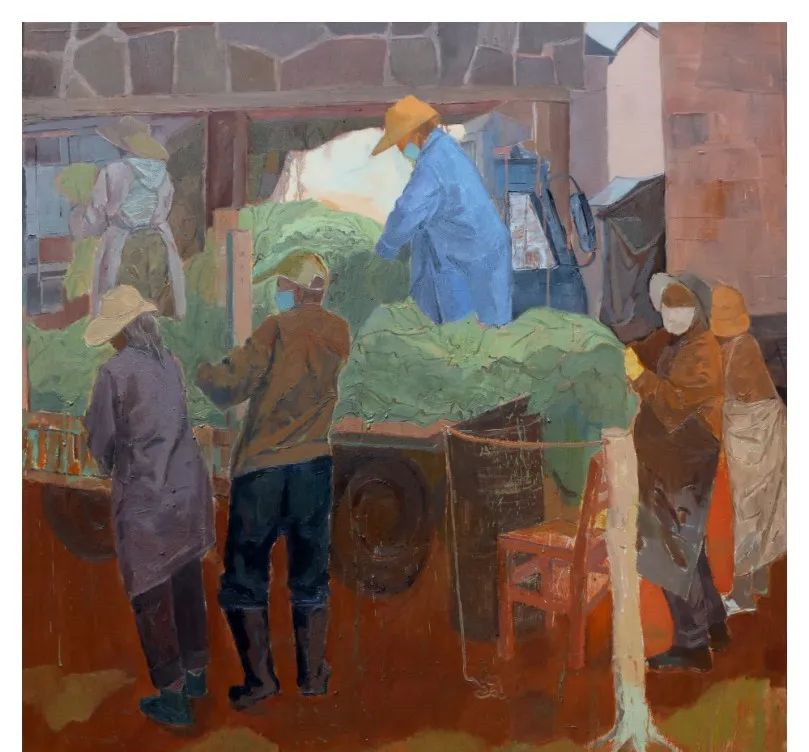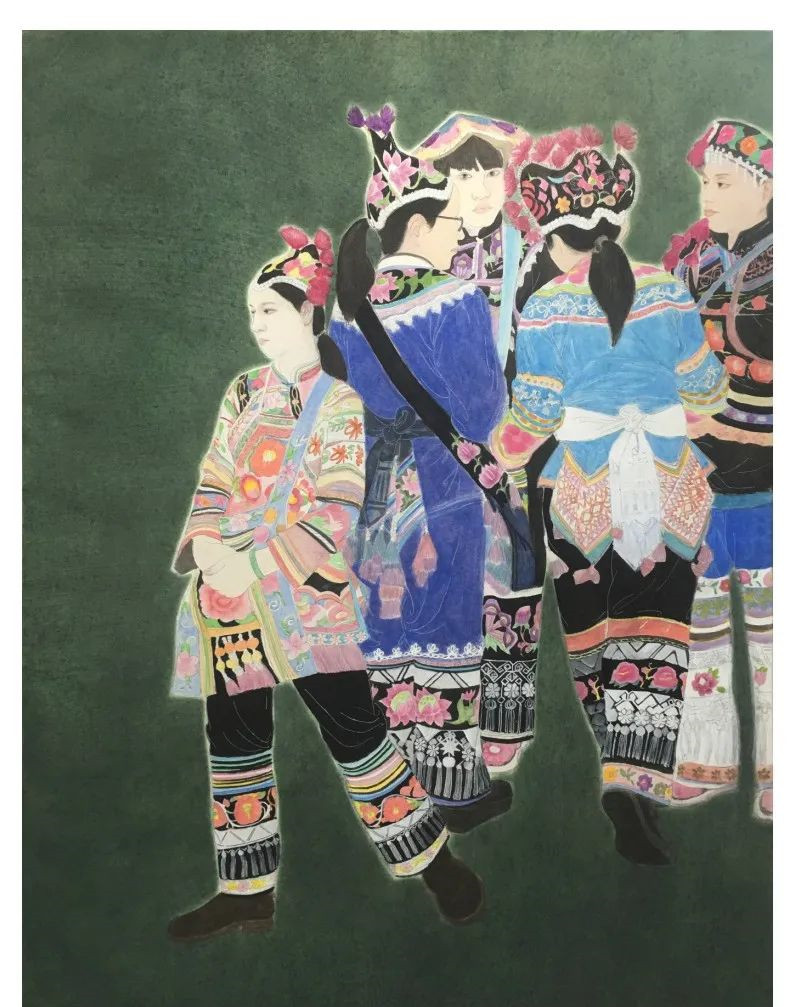 靳广伟 《独龙族群众认真学习总书记回信》150X150cm布面油画