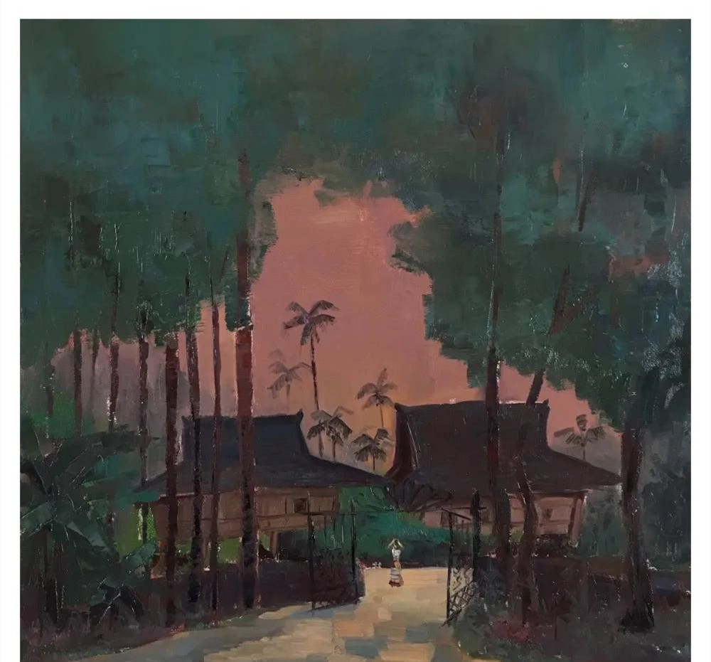 杨国荣《暮色中的曼春满》布面油画 60×60